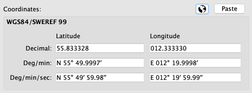 If you have copied coordinates, a button will appear here where you can paste the copied coordinates.