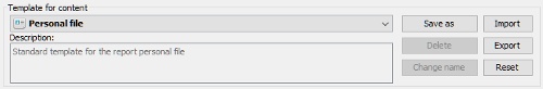 Reset restores the active template to default values, Delete delete the template and Change name, change the name of the template.