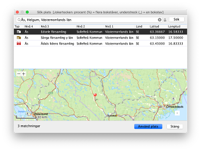 - select the location you want to use and click Use place.