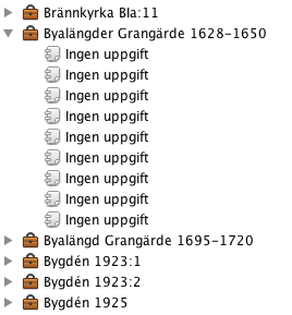 Som standard visas inte "tomma" källhänvisningar under källan i fönstret Källor och hänvisningar. Vill man redigera dessa källhänvisningar kan man göra det i biografin.