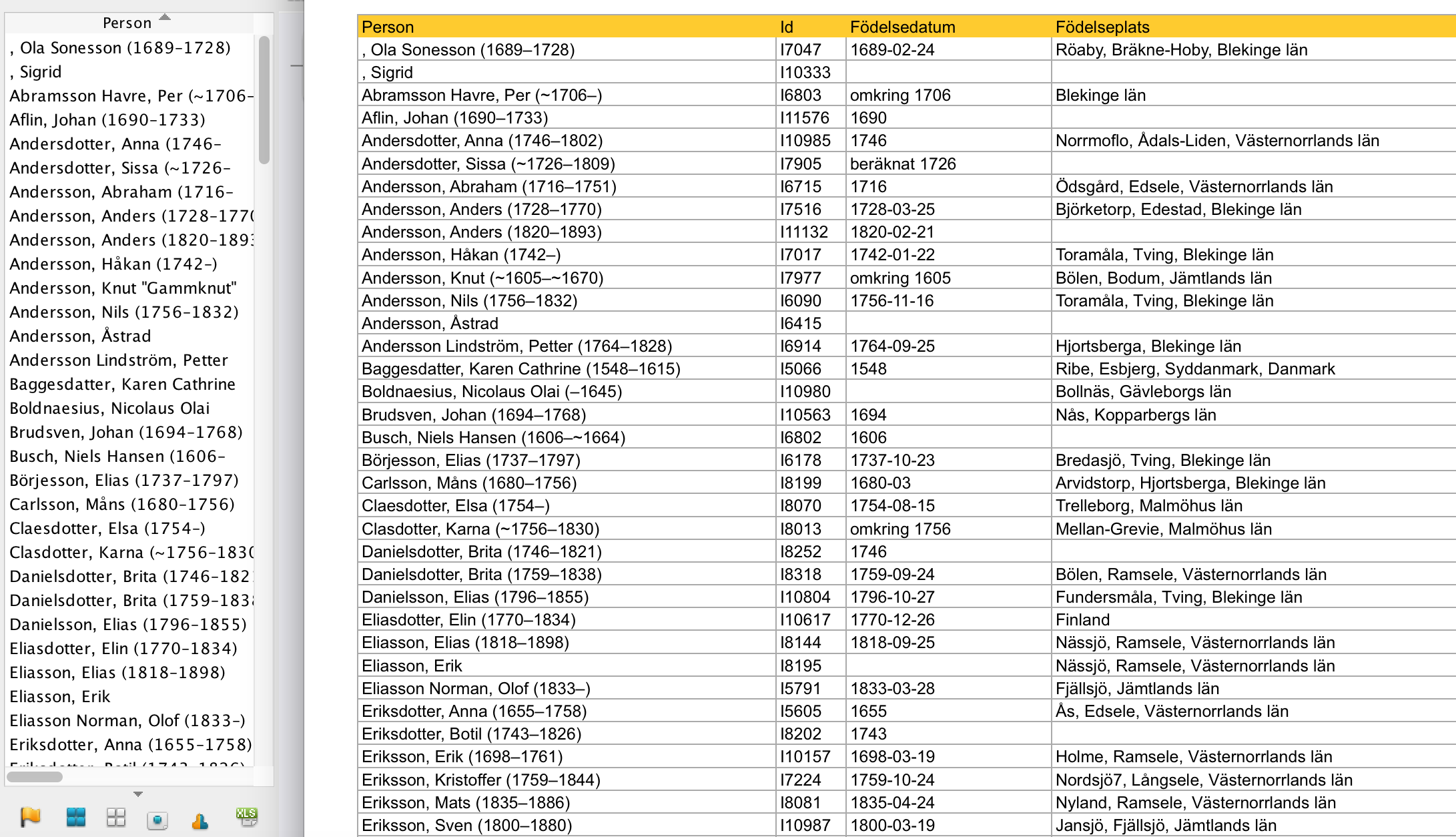 Om man klickar på personen i statusraden så visas en sammanställning över personen.