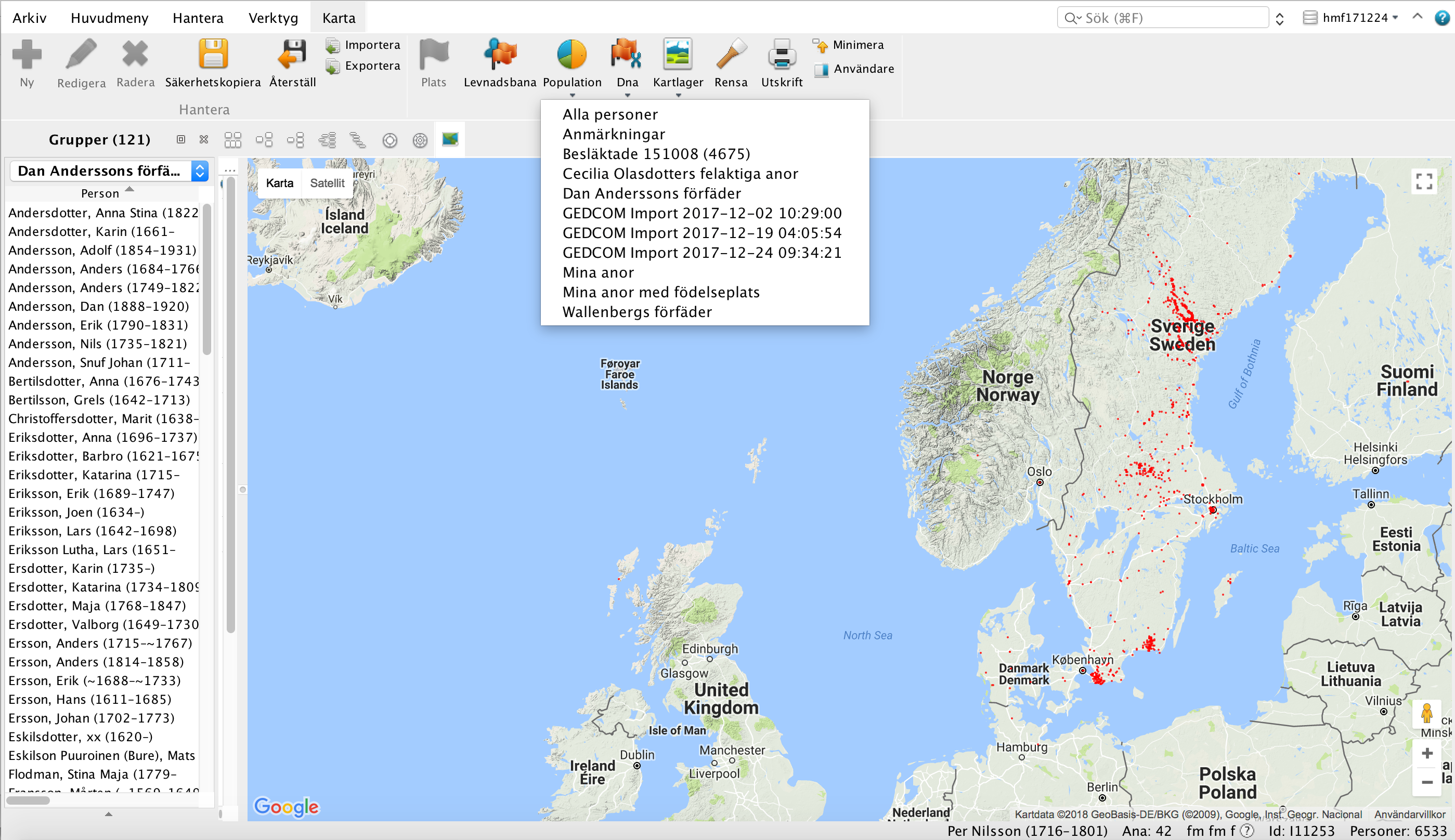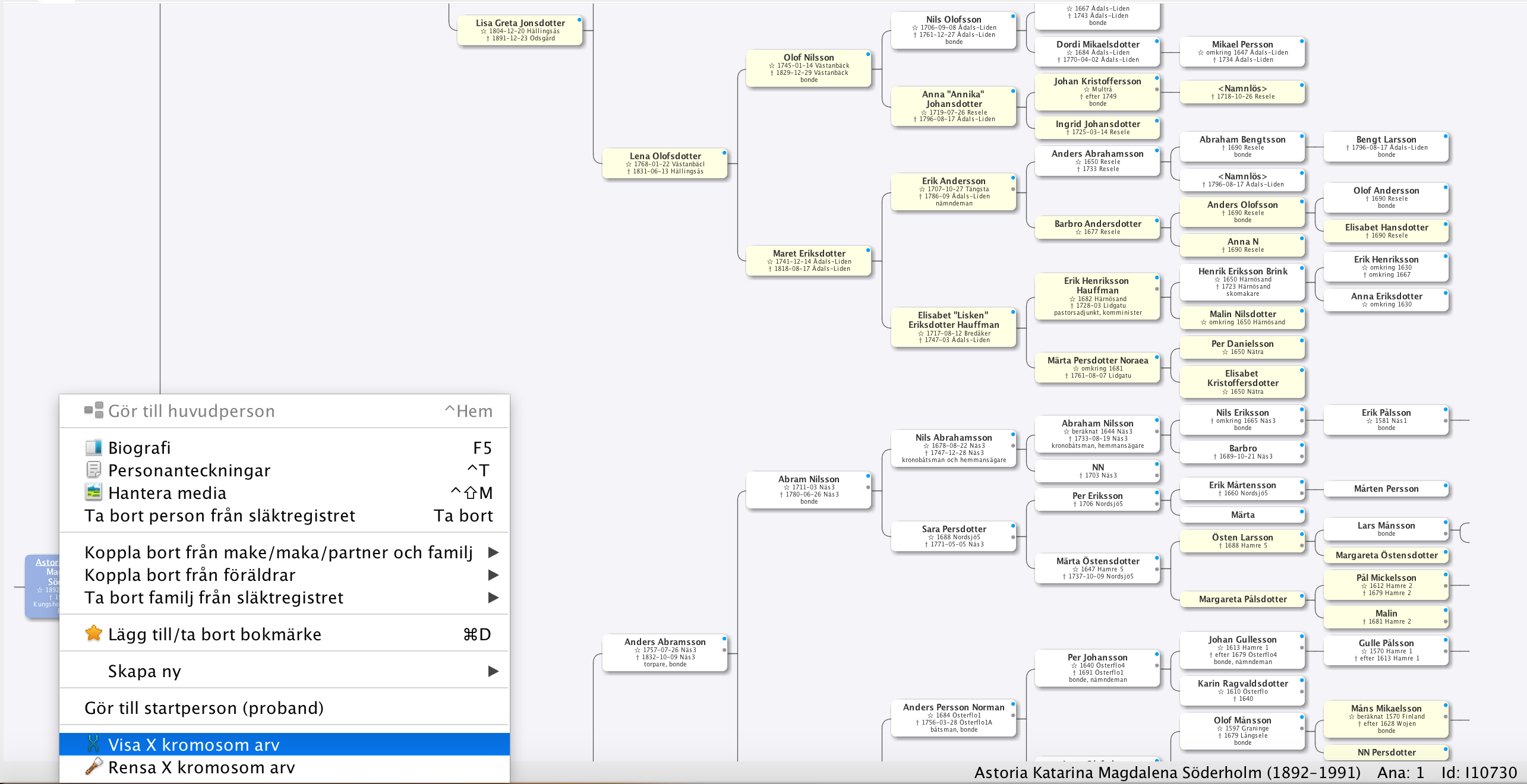 Du kan visa x kromosom arv för en person genom att högerklicka på personen.